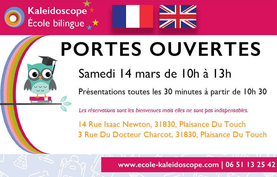 Kaleidoscope École bilingue est une école maternelle et élementaire bilingue français-anglais accueillant des enfants bilingues ou en devenir sur un parcours scolaire complet allant de la Petite Section au CM2.